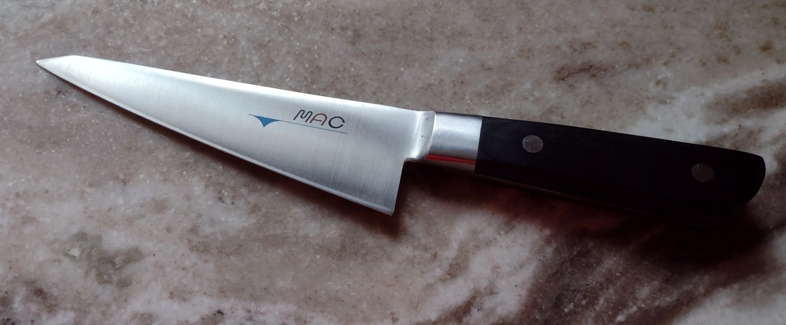 My "Go To" Knife. Technically, a Japanese Boning Knife, but I use it as my everyday chef knife. It fits my hand perfectly & I love the weight. Razor Sharp, I'll probably never use it as a boning knife. But I will chop, slice and dice with it. You can buy it at: